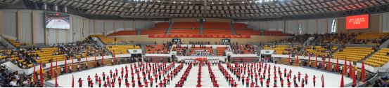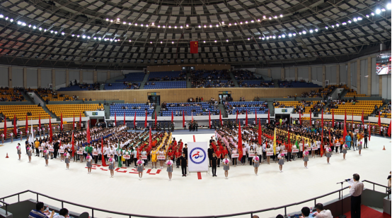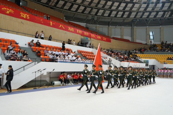 开幕式上,在振奋人心的运动员进行曲中,国旗队、鲜花队、红旗队、管乐队等依次有序入场。随后各学院方队喊着嘹亮的口号,身着代表学院特色的服装依次入场。各个方队精神抖擞,用矫健的步伐、响亮的口号展现着健康向上、团结进取、奋斗拼搏的精神风貌。在裁判员代表、运动员代表宣誓后,大型团体操表演闪亮呈现,引人瞩目。团体操表演分《弹力带舞操》和《我和我的祖国》两大幕,同学们和着音乐节拍,变幻成具有特殊意义的图案,讴歌了对祖国和党的热爱,充分展示了力与度、柔与美的完美结合。精彩的团体操表演充分展示了我校学子的风采,也赢得了全场观众热烈的掌声。