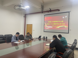 中国共产党第二十次全国代表大会于2022年10月16日在北京胜利召开。10月16日上午,体育工作部党直支组织党员和体社联师生代表在体育中心四楼407会议室集中收看大会开幕盛况,认真聆听党的二十大报告。下午,体育工作部党直支委员会在收看大会开幕式后,在体育中心四楼407会议室召开理论学习中心组专题学习会,第一时间传达学习党的二十大精神。理论学习中心组成员徐峰、施兰平、张军、郑苏法共4人参加,施兰平主持,徐峰领学,张军、郑苏法发言,理论学习中心组成员发言全覆盖。