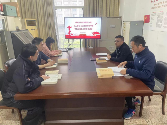 2023年4月25日下午,体育工作部党直支在体育中心四楼会议室召开深入学习习近平新时代中国特色社会主义思想主题教育专题学习推进会,会议由党直支书记徐峰主持,党直支班子成员参加。本次会议主要围绕3个部分进行: