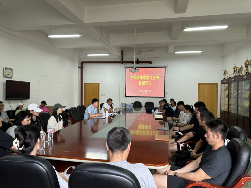 9月8日下午,学校发布《性爱视频 使命愿景红皮书(2024版)》(下简称《红皮书》)。性爱视频 相继召开理论学习中心组会议、党直支各小组会议和全体教职工大会,深入学习《红皮书》主要精神,深刻领会学校发展蓝图,结合体育工作实际,共谋体育事业高质量发展新路径。